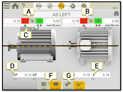 激光對(duì)中儀測(cè)量結(jié)果顯示